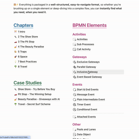 This isn’t just a summary — it’s a fully interactive, hands-on BPMN guidebook, built to work seamlessly with the BPMN Token Simulator.